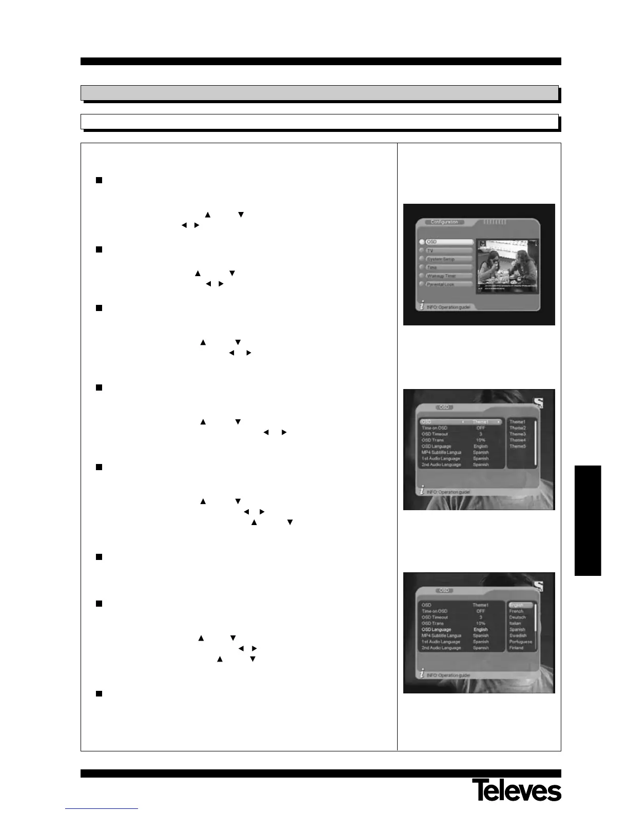 To do so, using buttons CH+ / CH- locate the cursor on the “OSD”