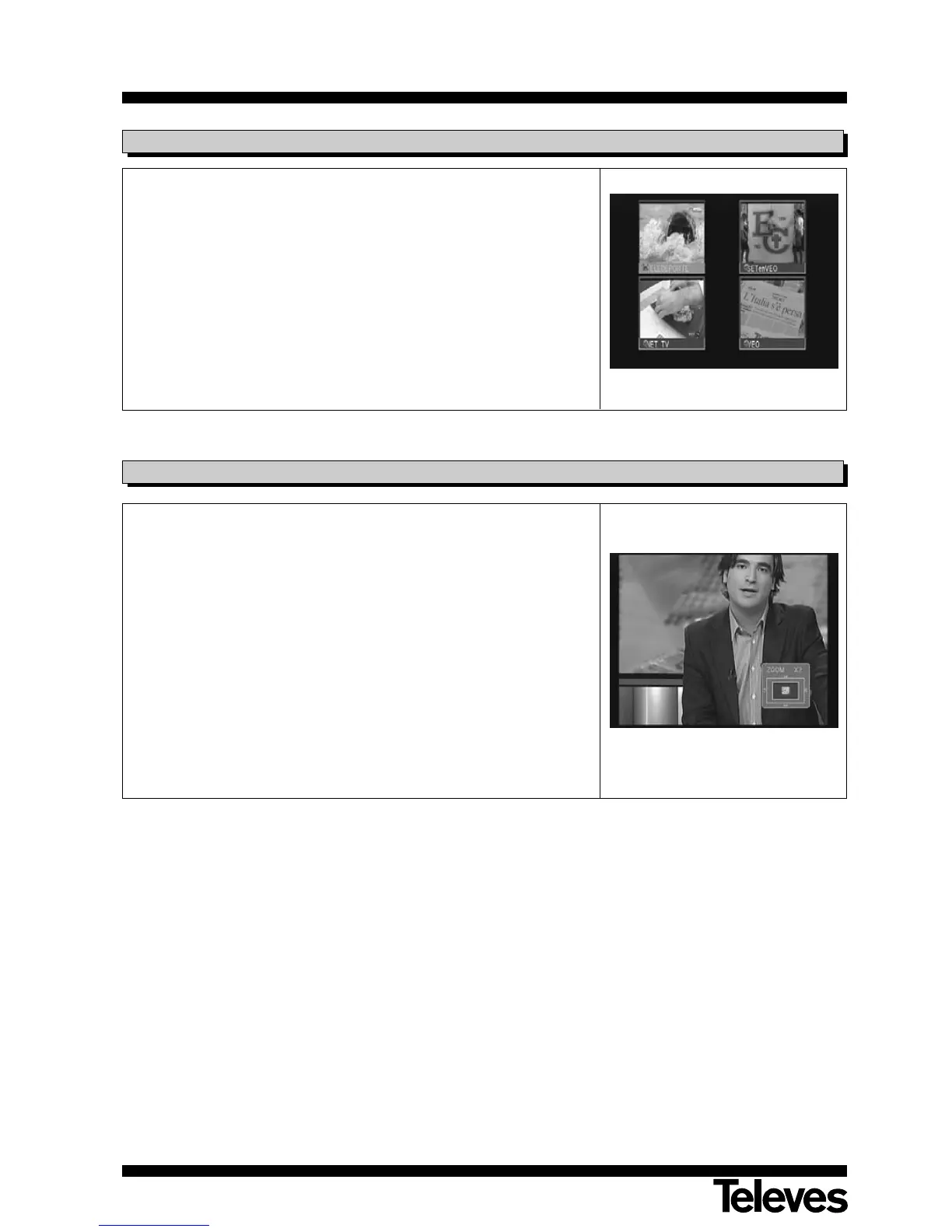 programas) constituido por 4, 6 ó 9 pequeñas pantallas. El número de