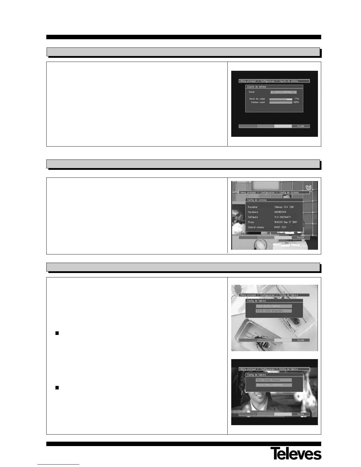 opción “Ajuste de la antena” en el menú “Configuración” mediante las