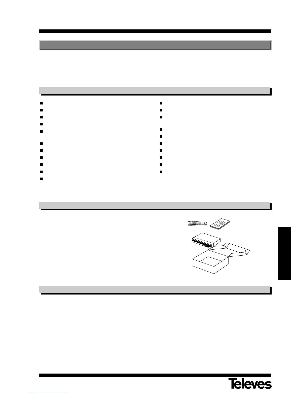 displays. These menus will help you to enjoy your Televés adaptor, as they guide you through installation, program ordering,