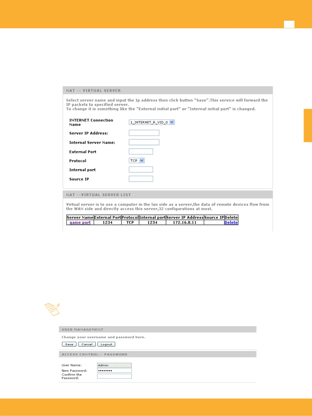 Virtual Server (Port Forwarding): This option allows the propagation of ports to the LAN. It allows