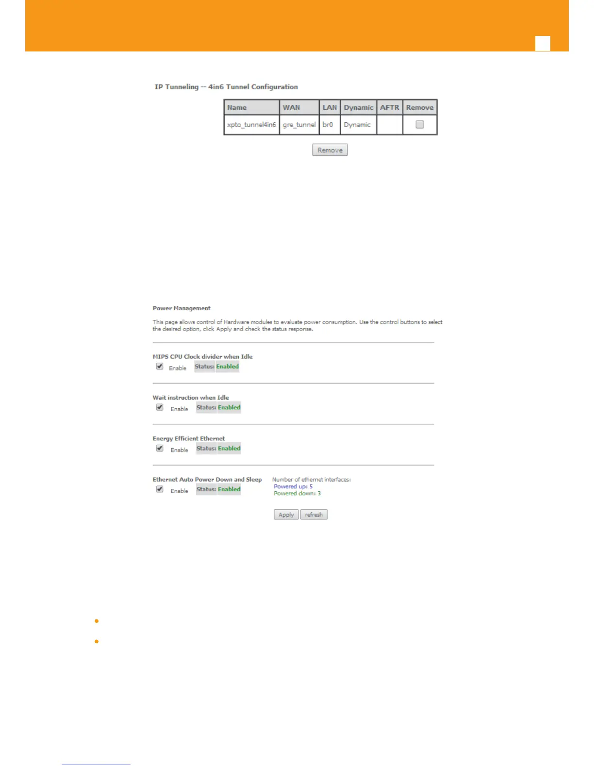 responding checkbox and use the enabled button. The Apply button will nalize the power management conguration. Refresh button allows the