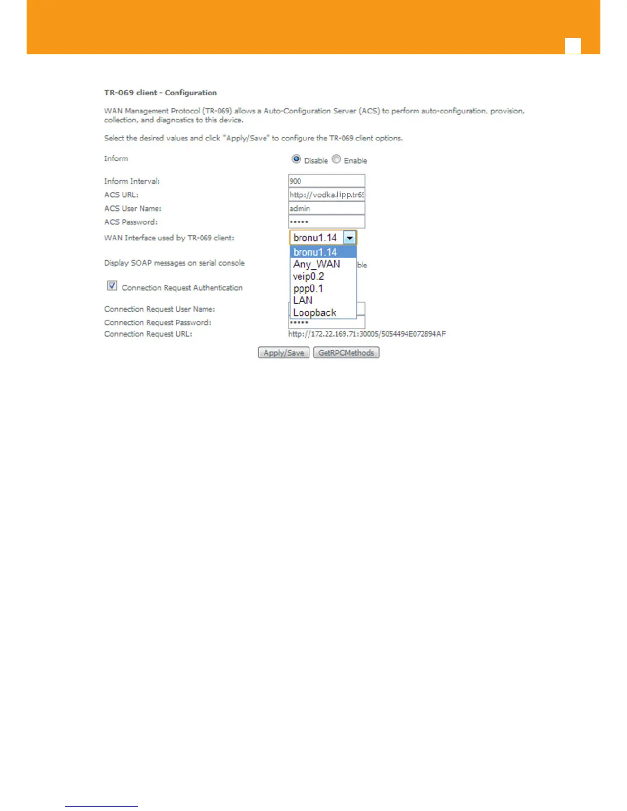 Figure 5-188: Management, TR-069 Client Conguration window – WAN Interface Options