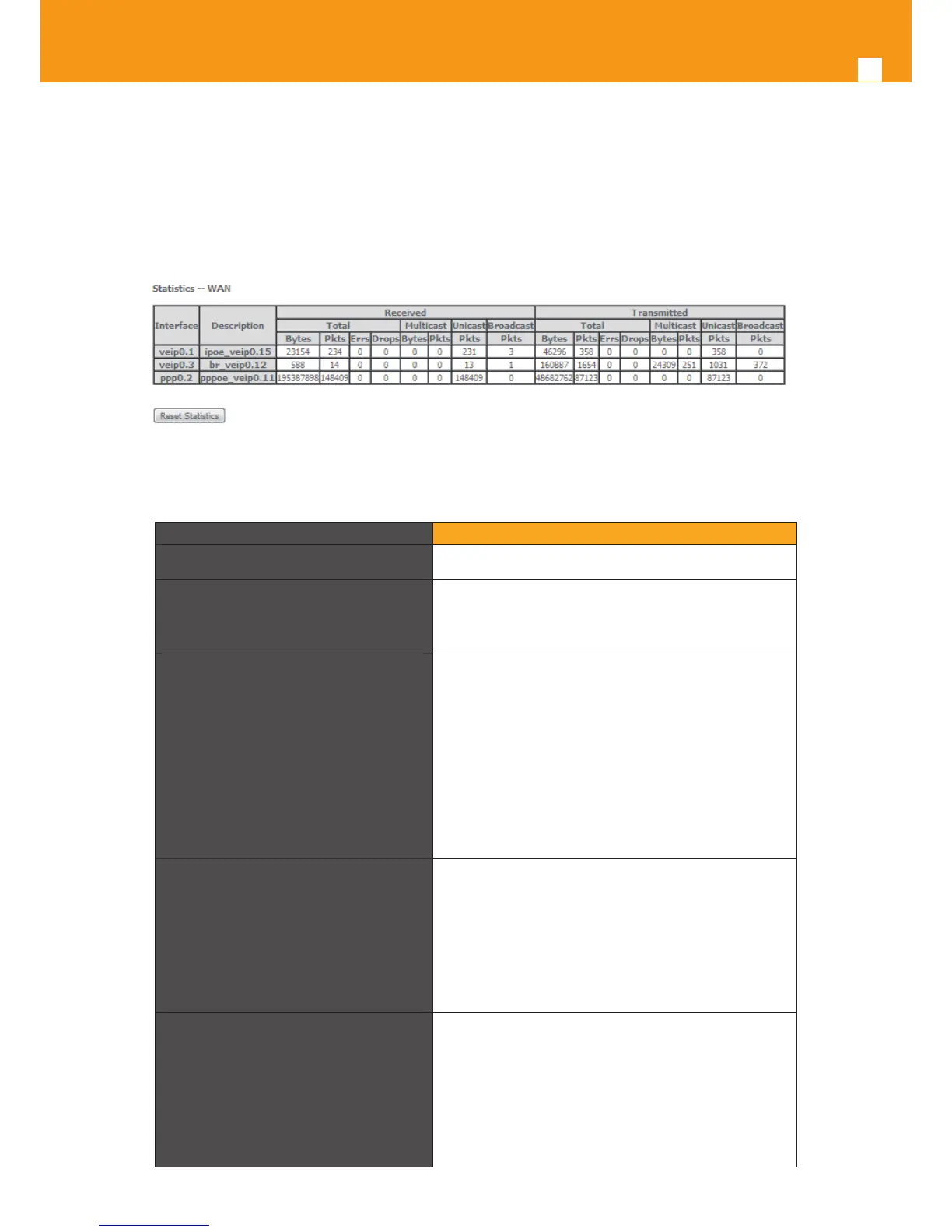 WAN Service statistics parameter description can be found in Table 5-2.