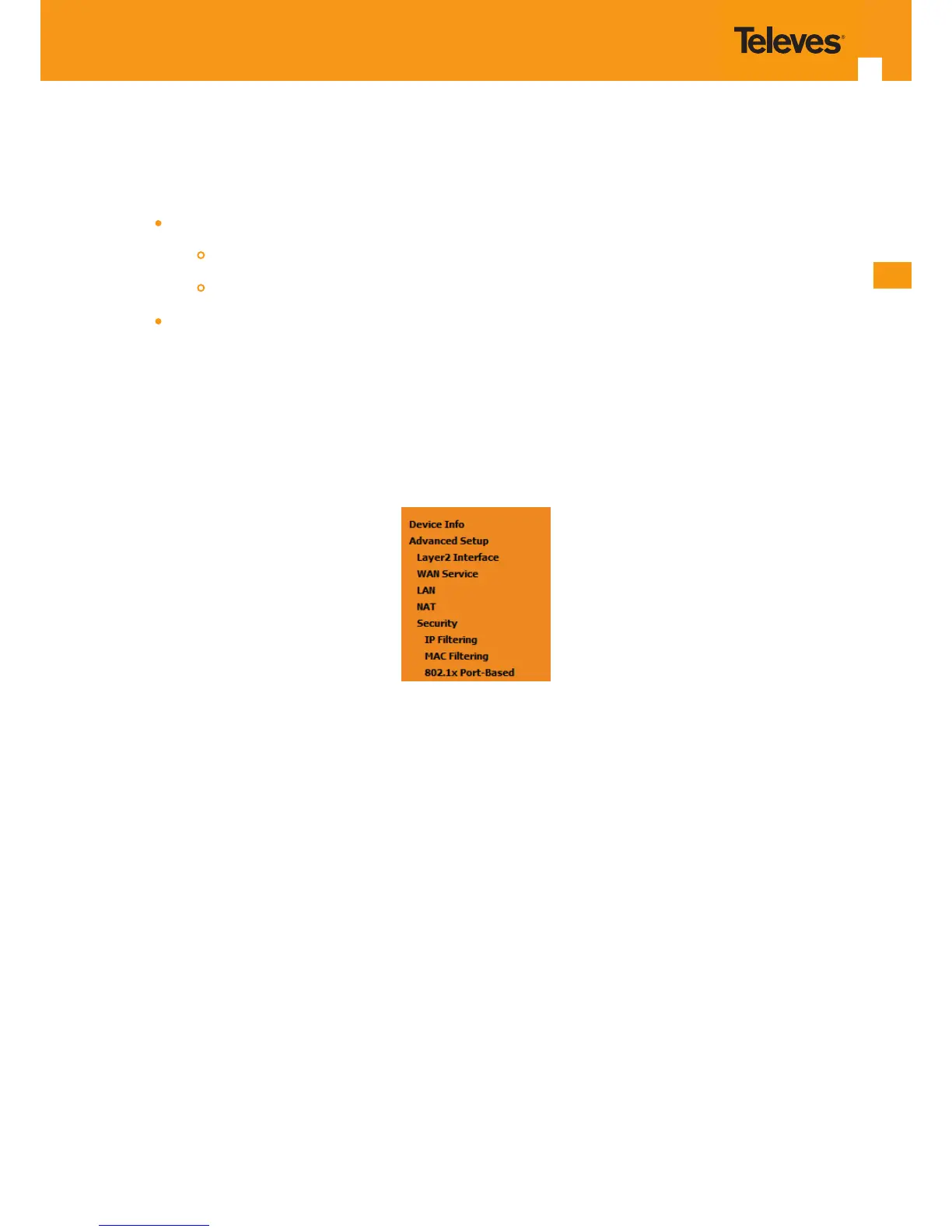 Figure 5-88: Advanced Setup Security Sub-menu5.6.5.1 IP Filtering