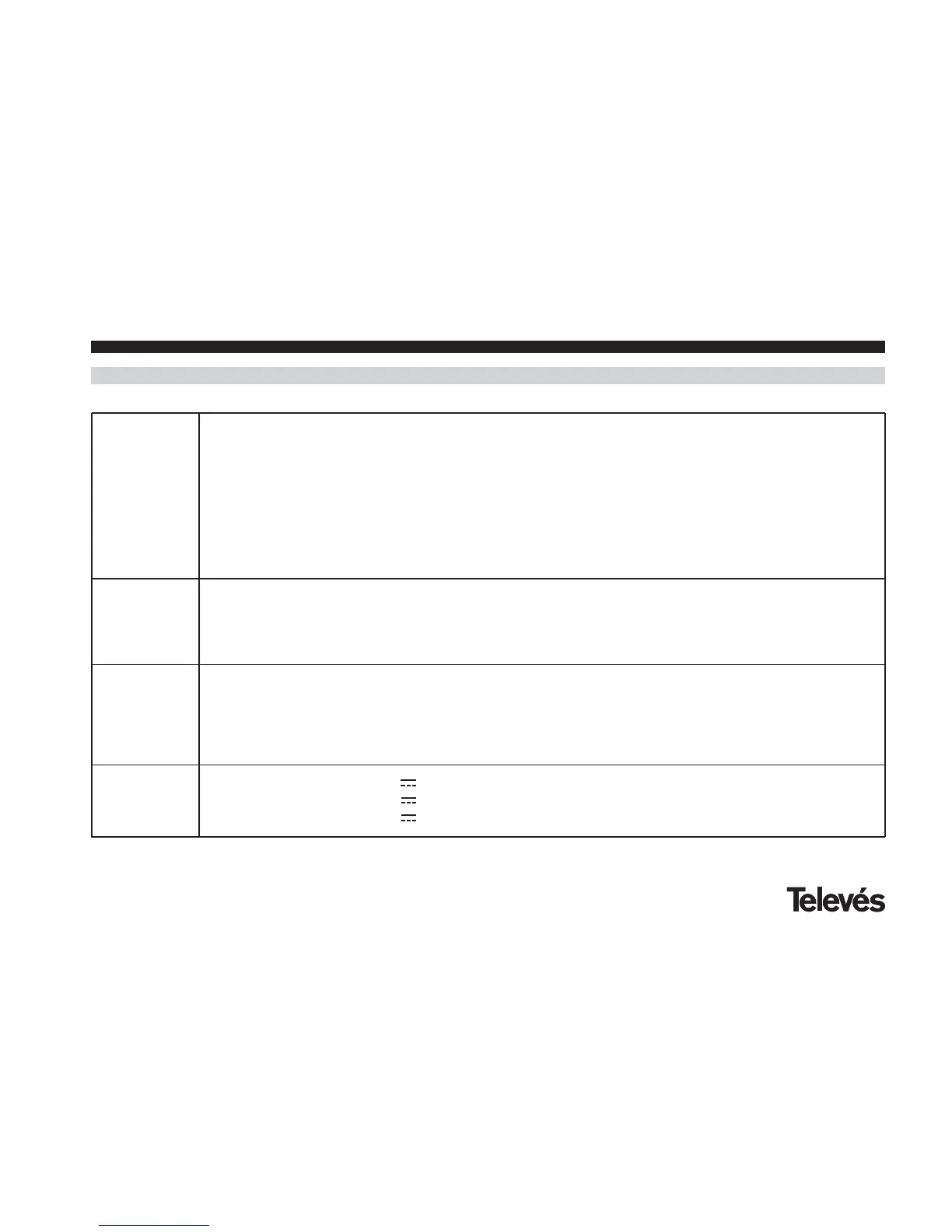 Nivel de salida: 80 ... 65 dBµV Impedancia de salida: 75 ohm.