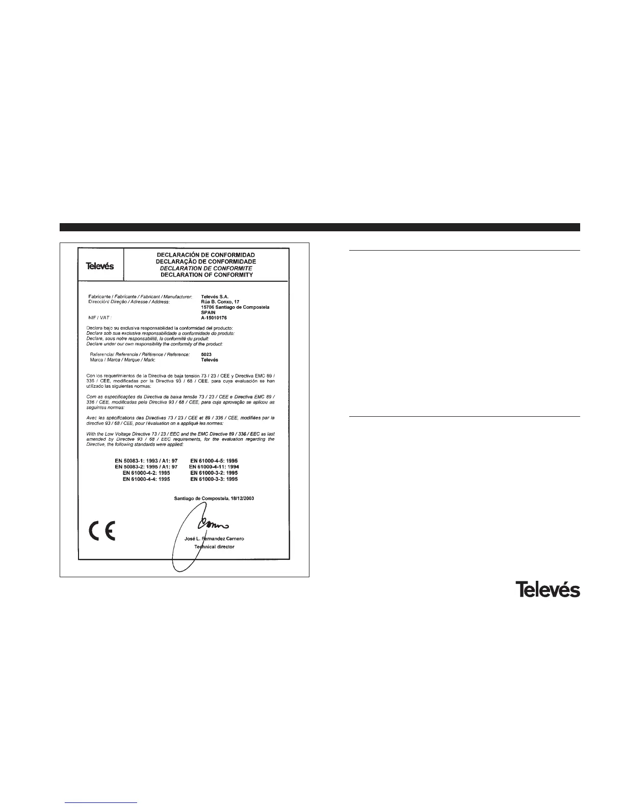 Durante el período de garantía, Televés S.A. se hace cargo de