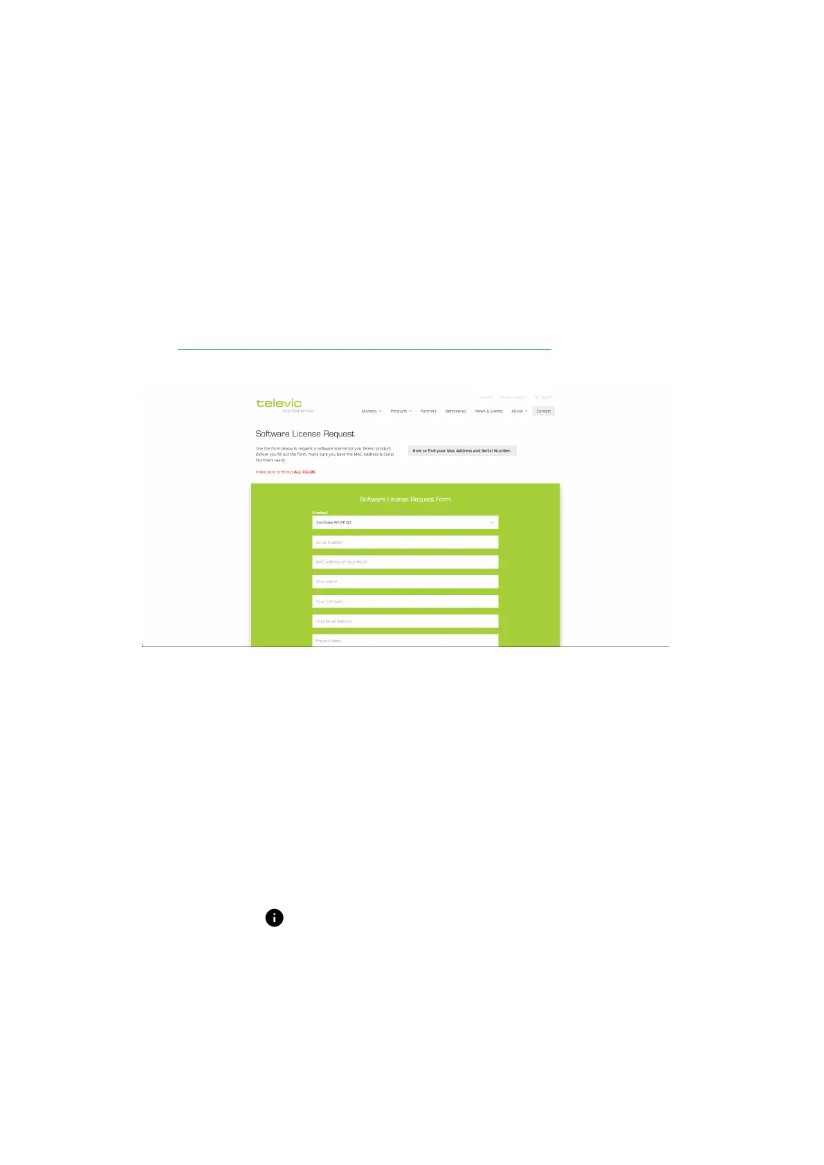 1. Go to https://www.televic-conference.com/en/software-license-request , the website describes