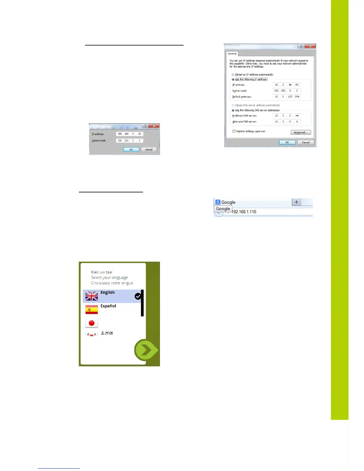 - Enter the IP Settings op the PC