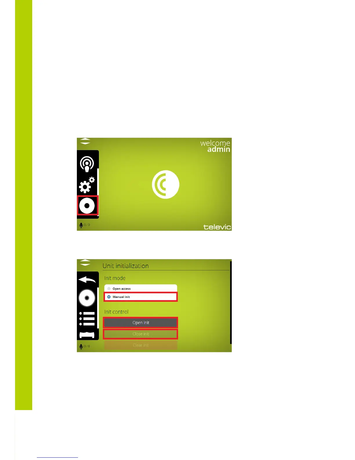 displayed above: “Open init”, “Close init” and “Clear init”.