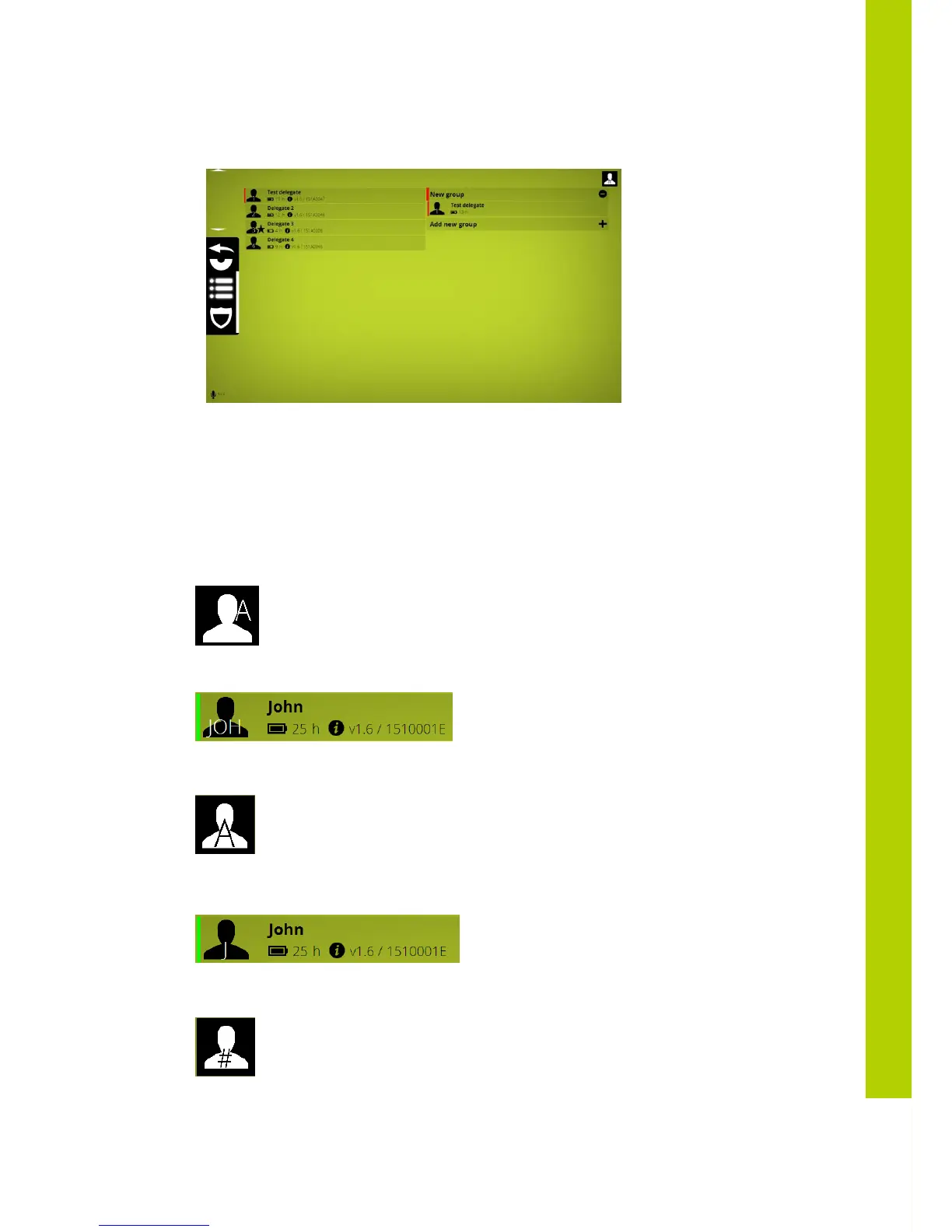 => shows delegate unit nr in the delegate icon, firmware version , battery status
