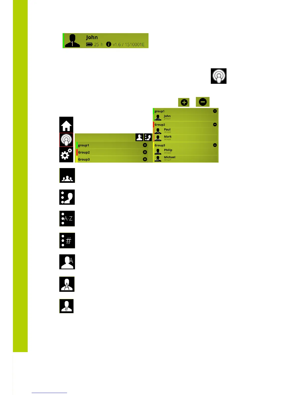 => shows delegate unit nr in the delegate icon ,delegate name and group , when