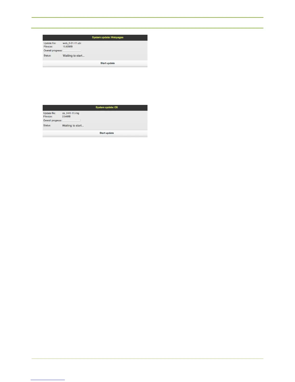 “Upload”, “Start update”. The update takes