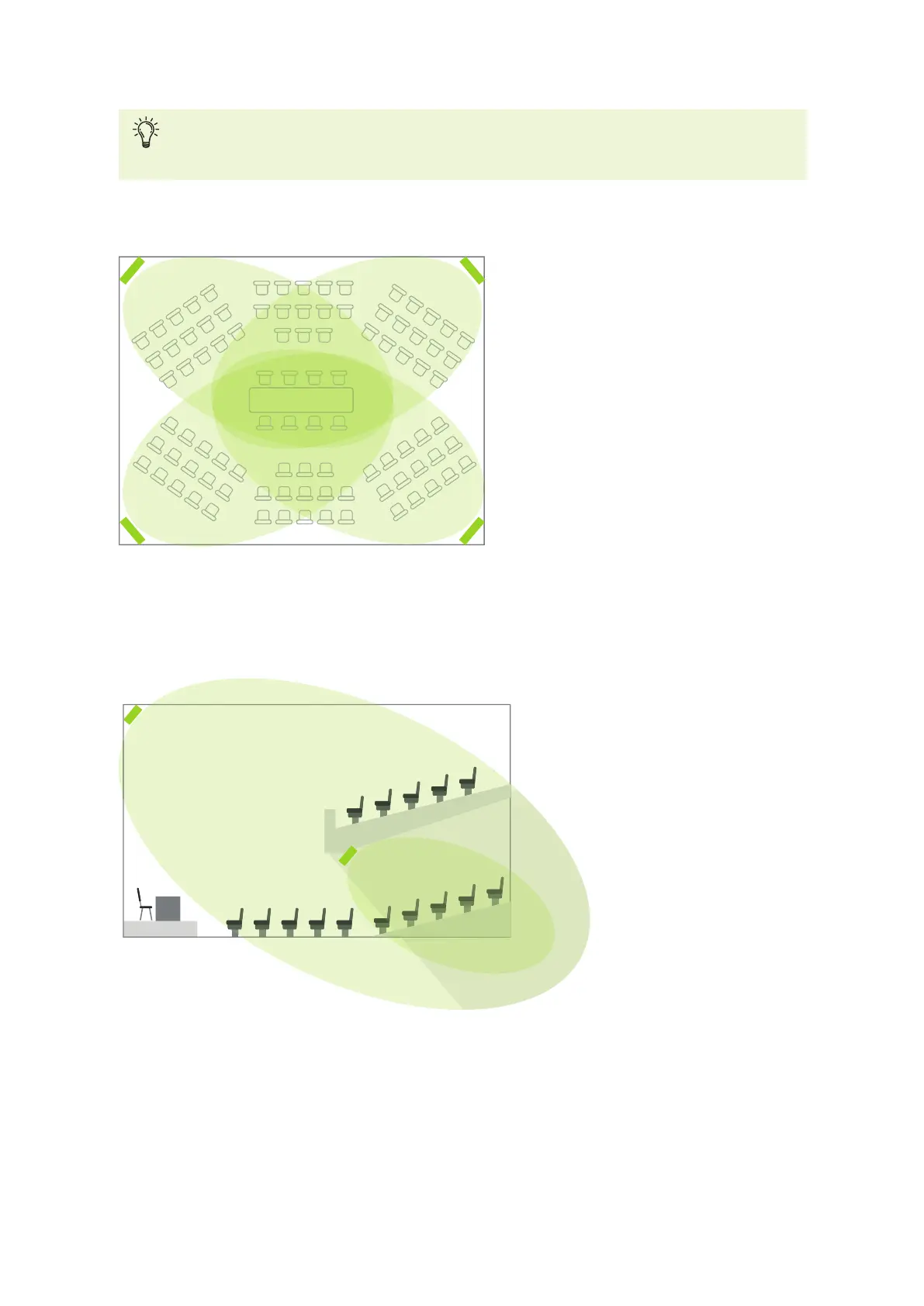 For rooms where the rearrangement can change or rooms where seats are positioned concentrically,