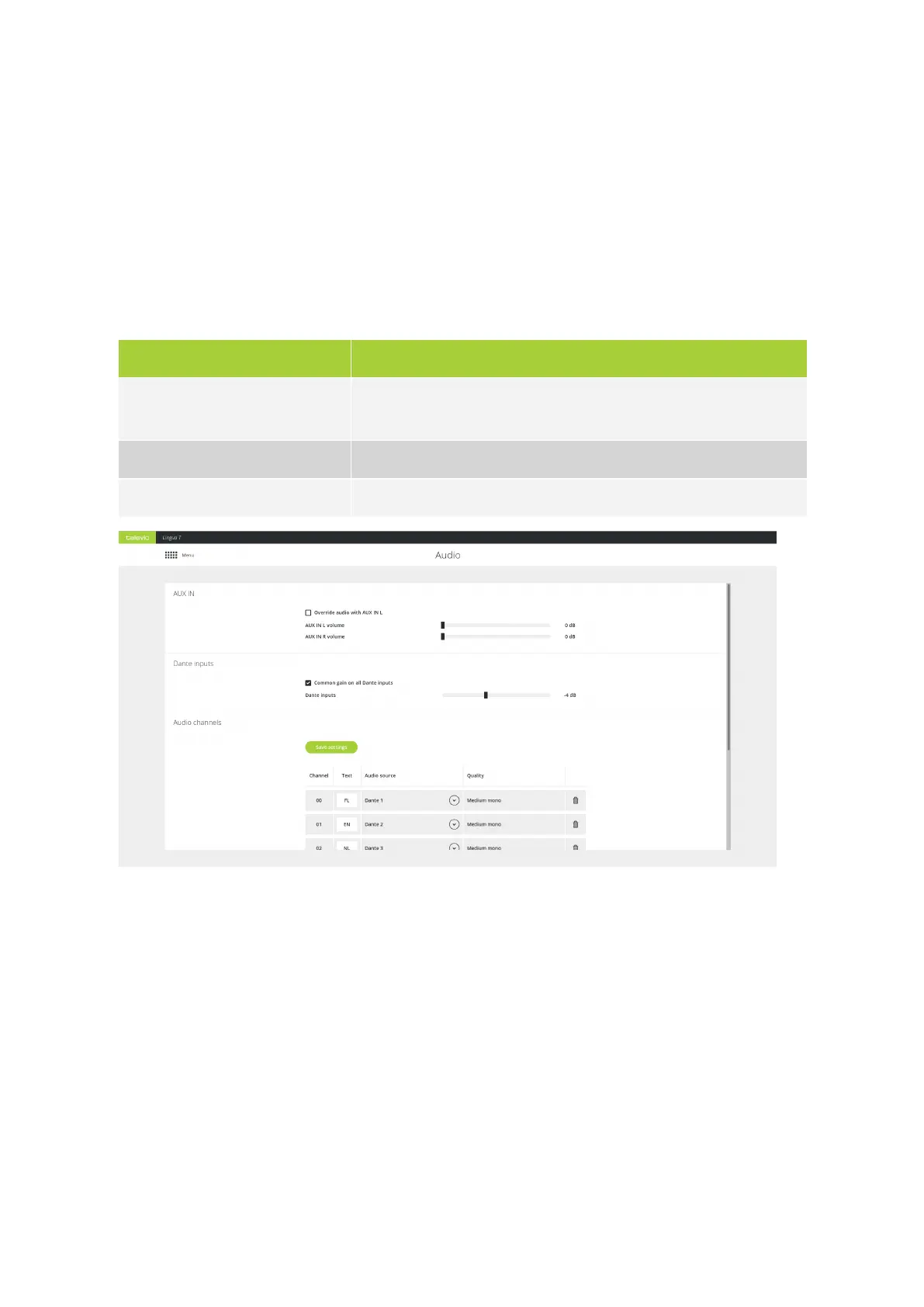 With the AUX IN settings you can configure the following parameters