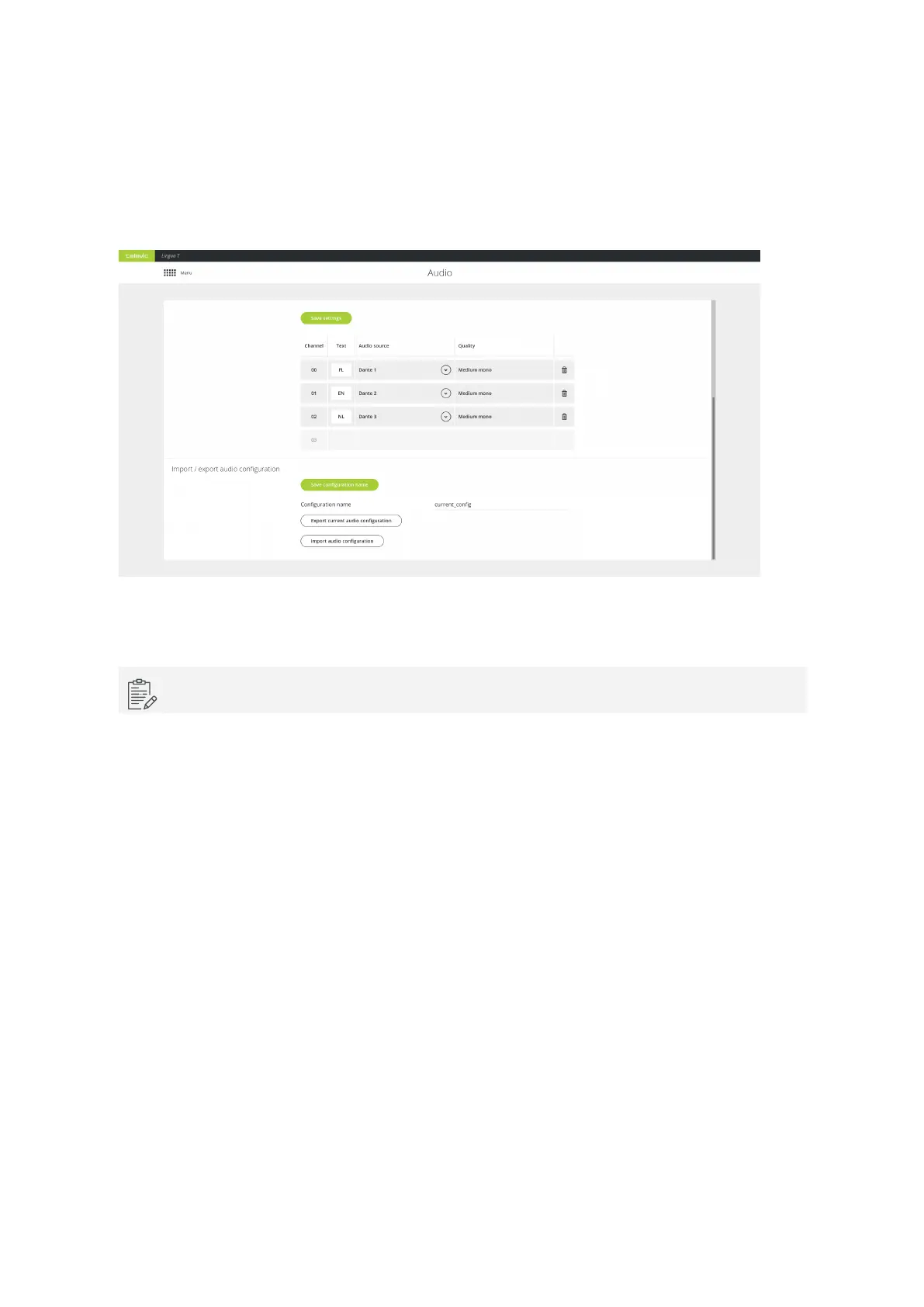 It is possible to import and export audio configuration settings. Define the Configuration name and click