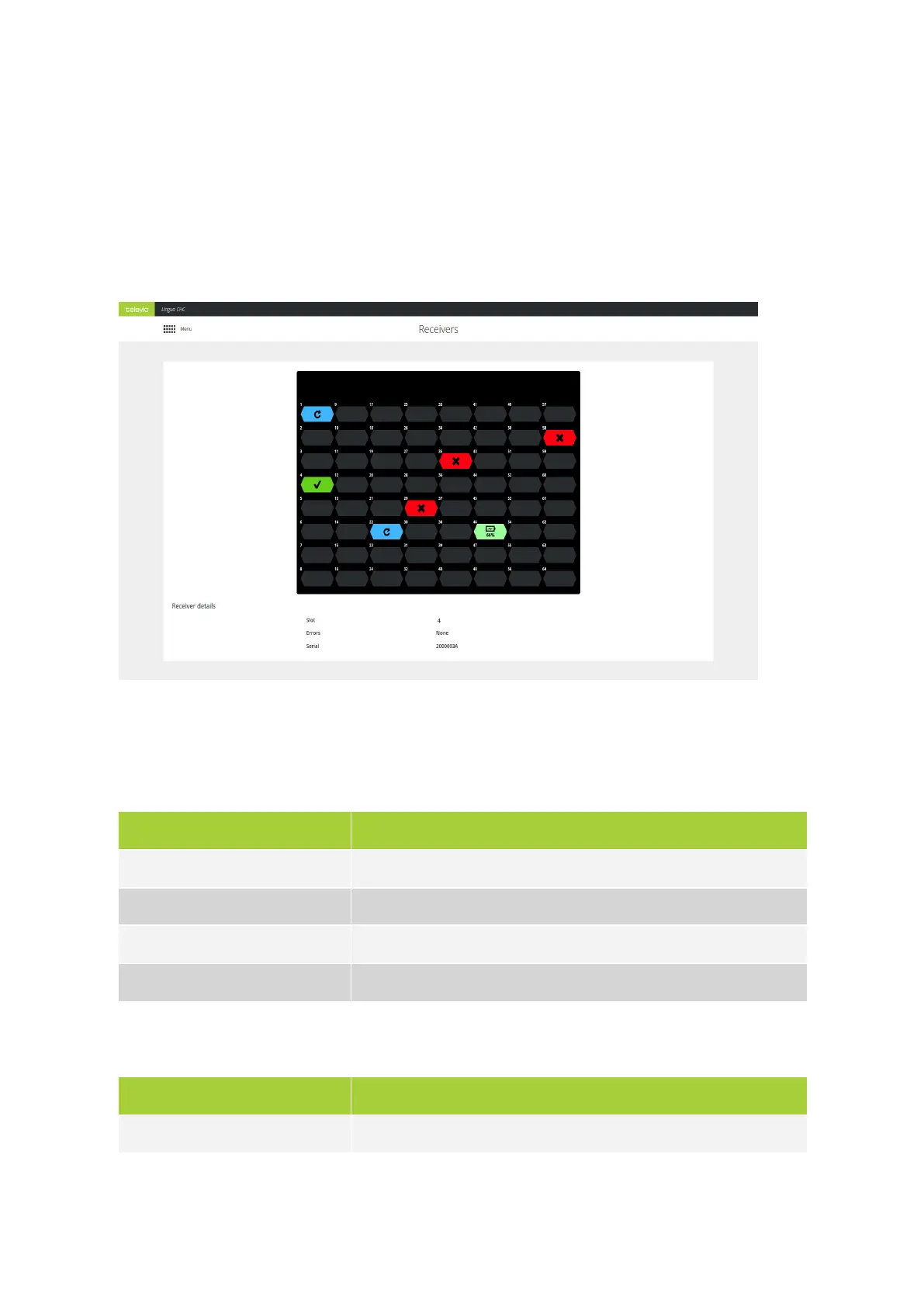Below the table you can find additional receiver information when you click on a receiver in the overview