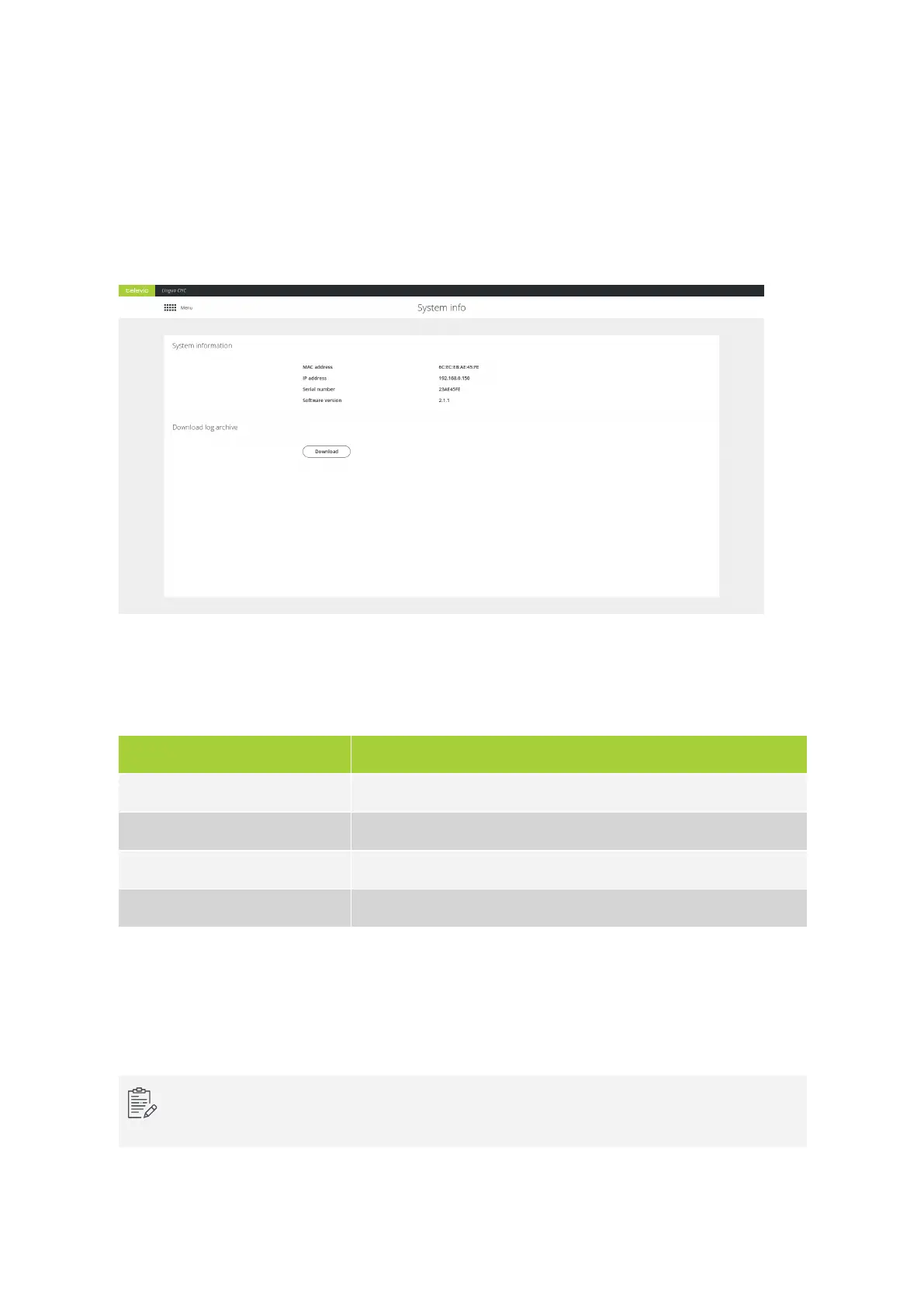 Figure 13-1 The System info page of the web server