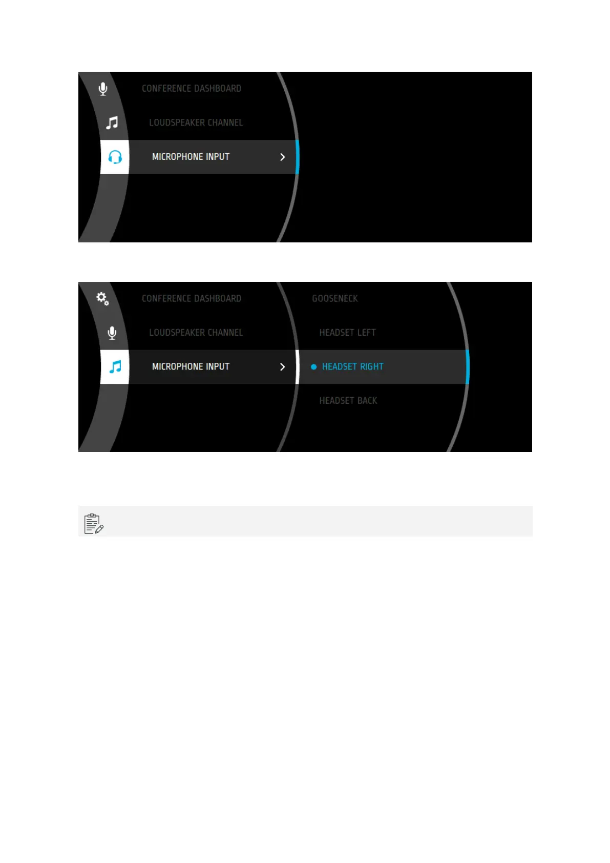 When you use a headset select: Headset left, right or back or if you use a microphone select: Microphone:
