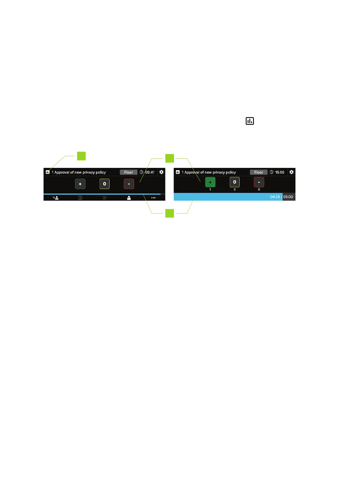 agenda item name. The chairperson can activate the voting session from its unit, or the operator can start it