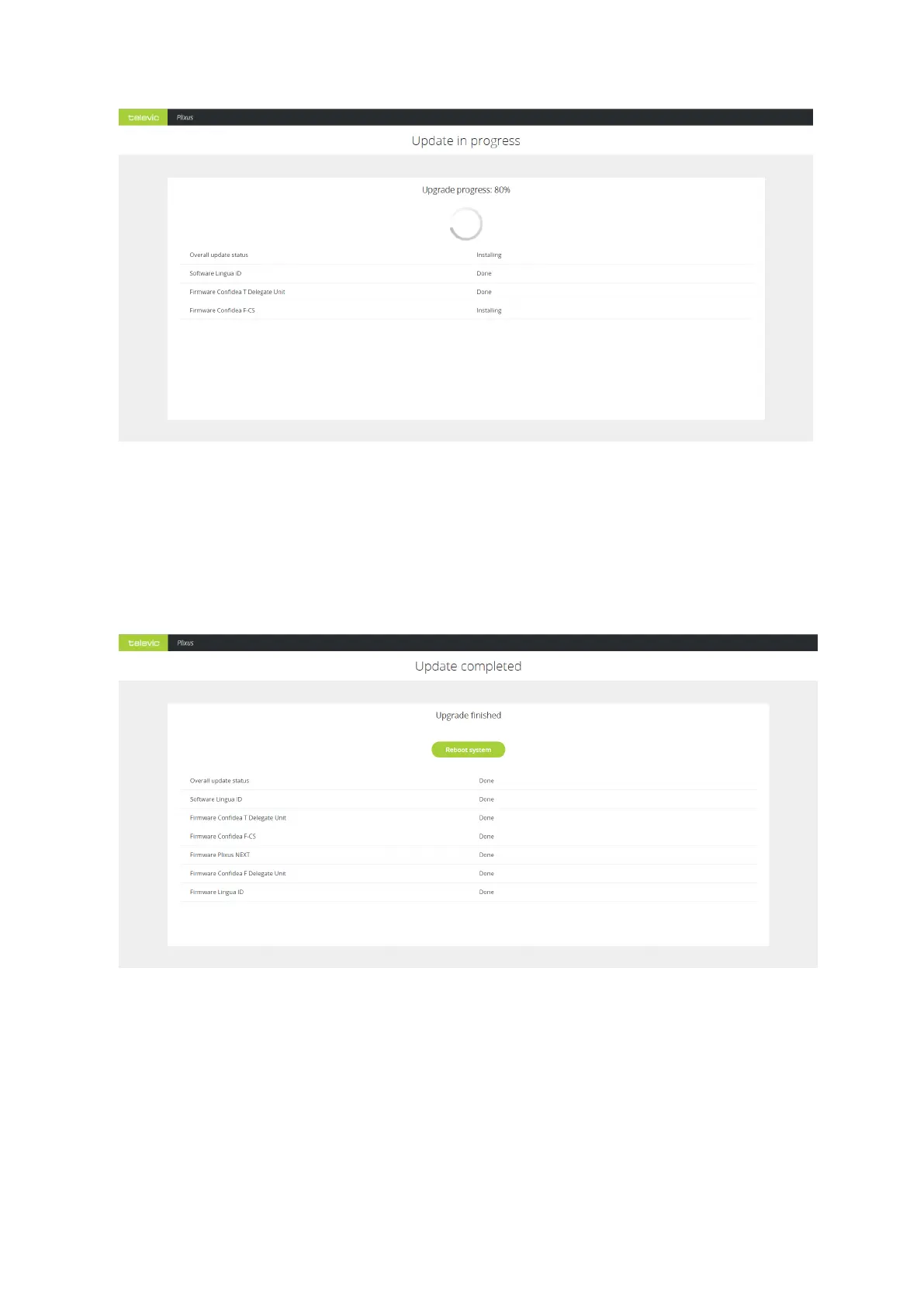 When the update is complete click Reboot system to restart this the system. This is required for the update