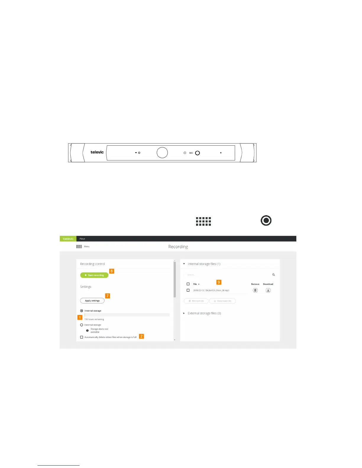 With the Plixus AE-R you have the option to record meetings. You can start recording by pressing the button