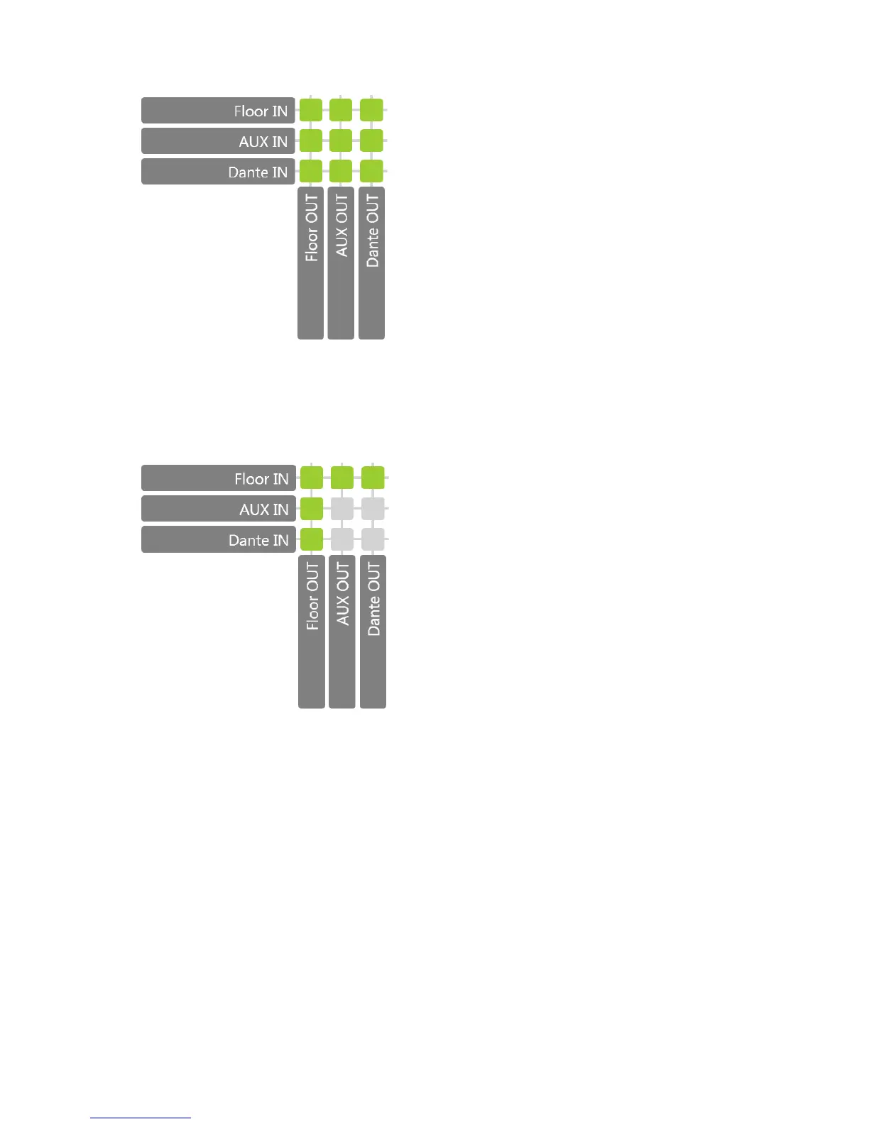 This adds an external signal, using AUX IN, to the local floor signal and sends the local floor signal, using