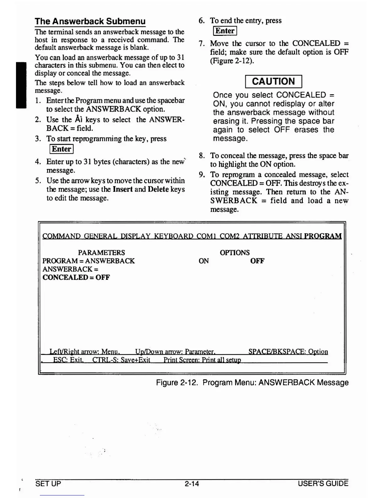 Figure 2-12. Program Menu: ANSWERBACK Message