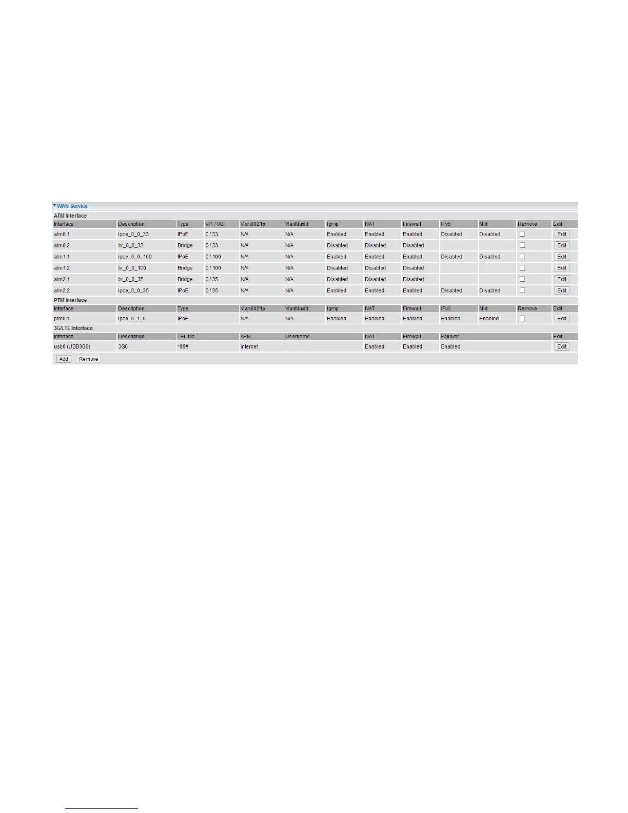 (VDSL) and 3G/LTE. Configuration of PTM mode is similar as ATM mode, here take ATM mode WAN