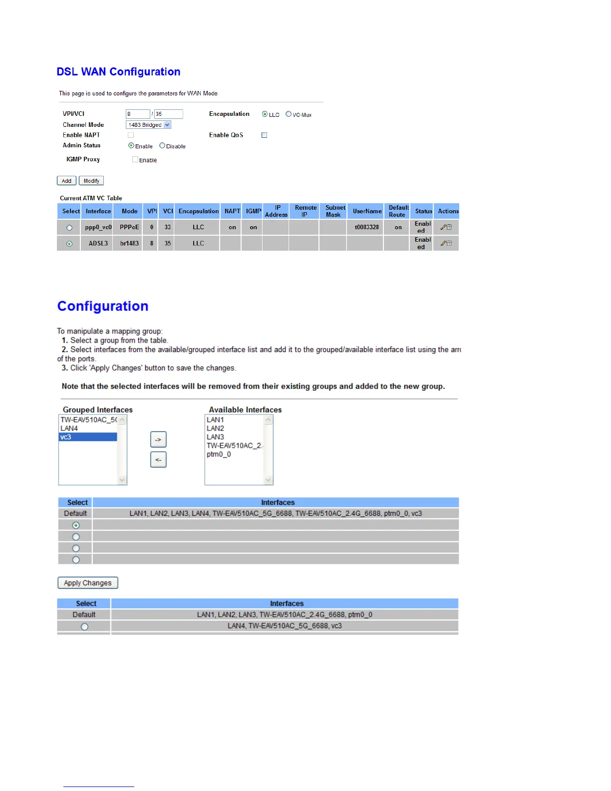 2. Classify interfaces into one group. Click Apply Changes to save.