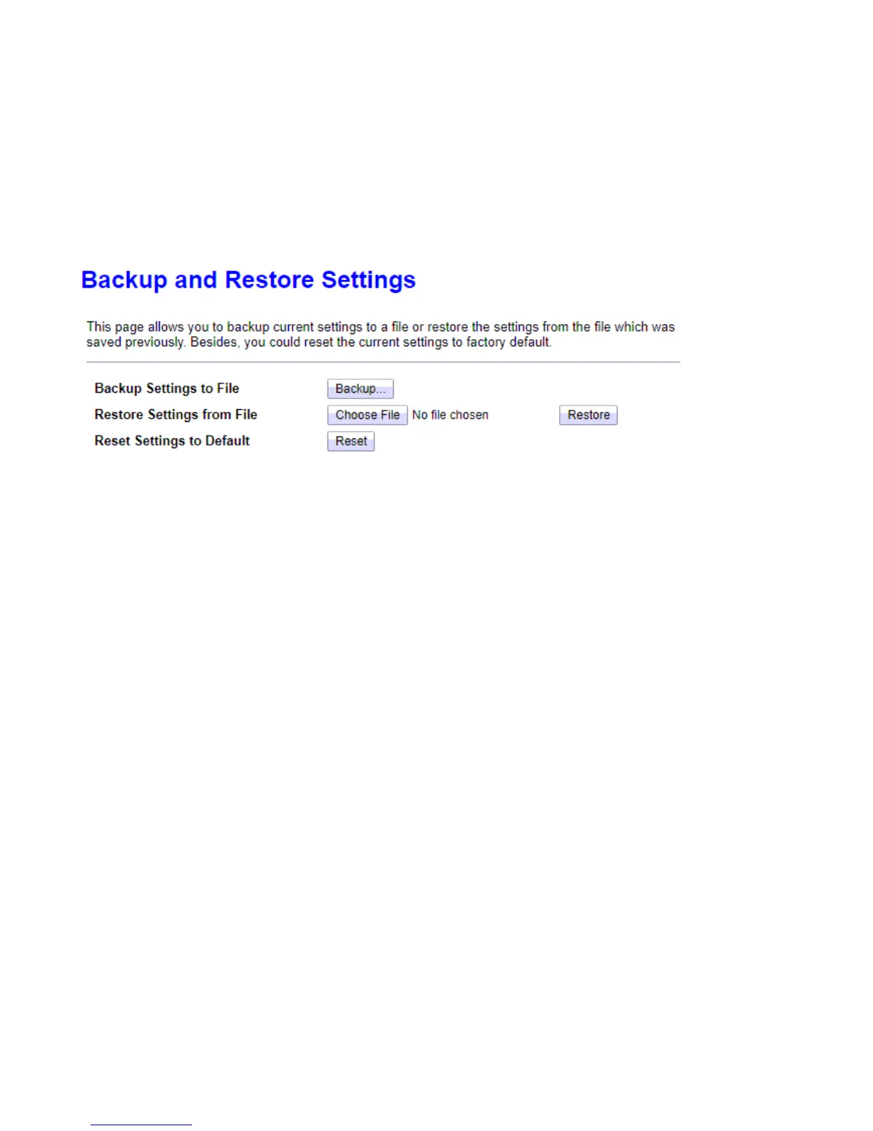 Reset Settings to Default: Press Reset button to restart the device with factory default settings.