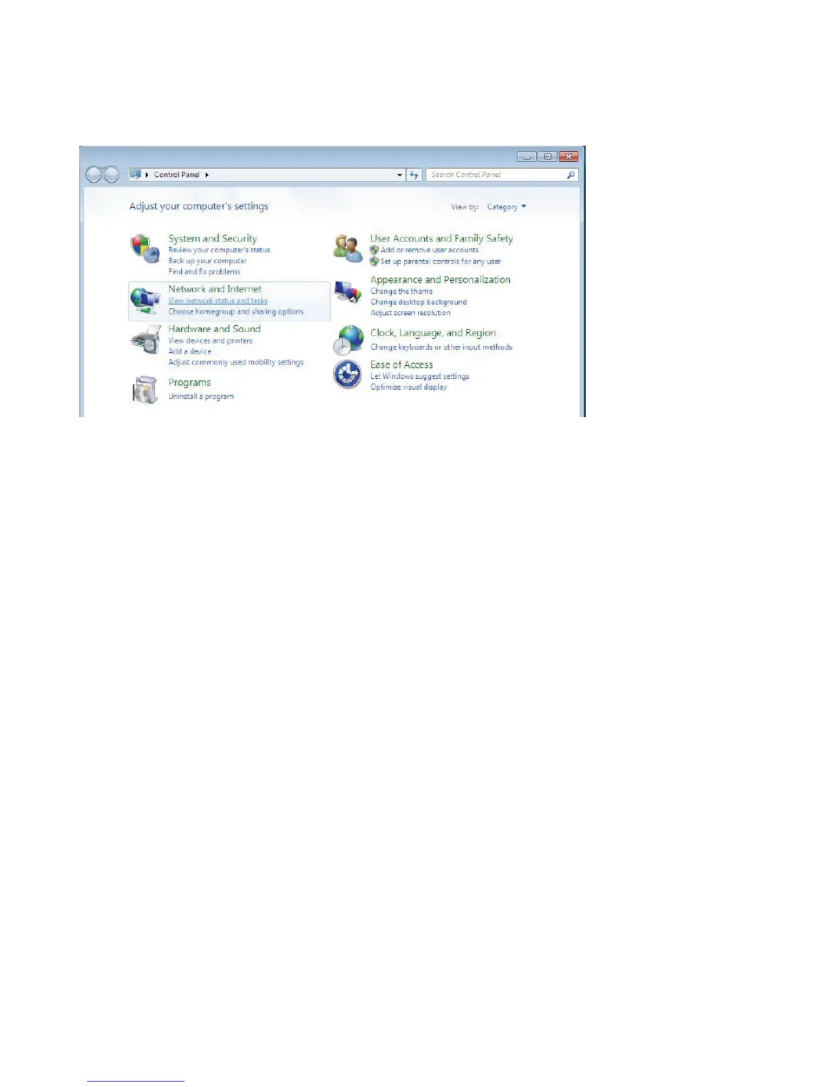 Go to Start. Click on Control Panel. Then click on Network and Internet.