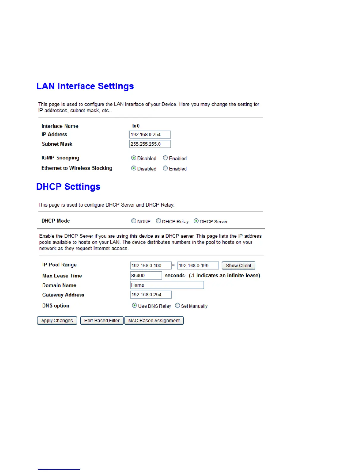 IP address: the IP address of the router. Default is 192.168.0.254.