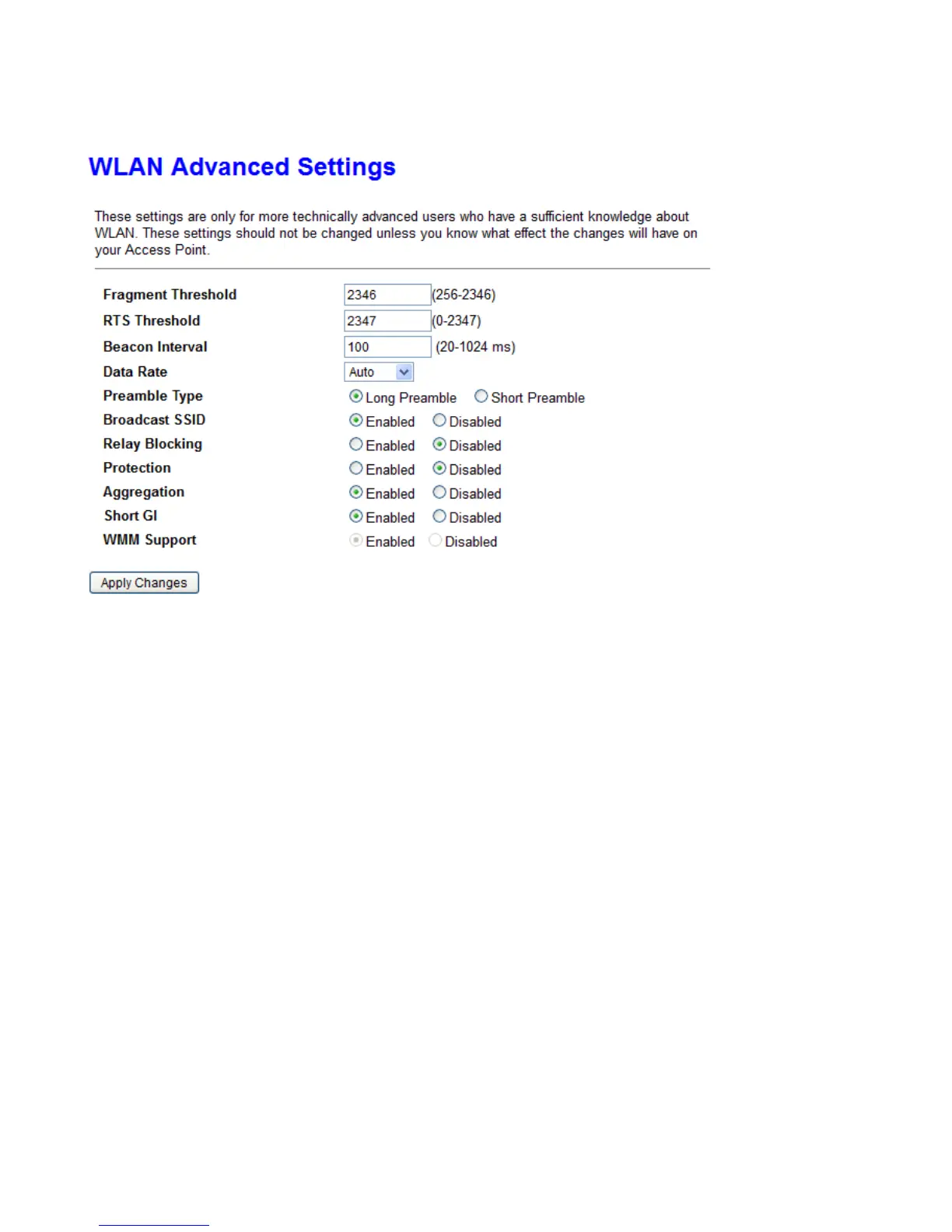 Here user can set some advanced parameters about wireless.