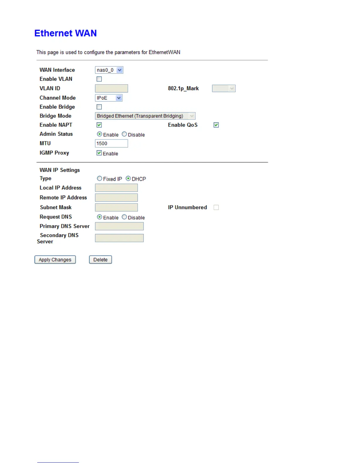When Channel Mode is set to IPoE, you will have the options below.