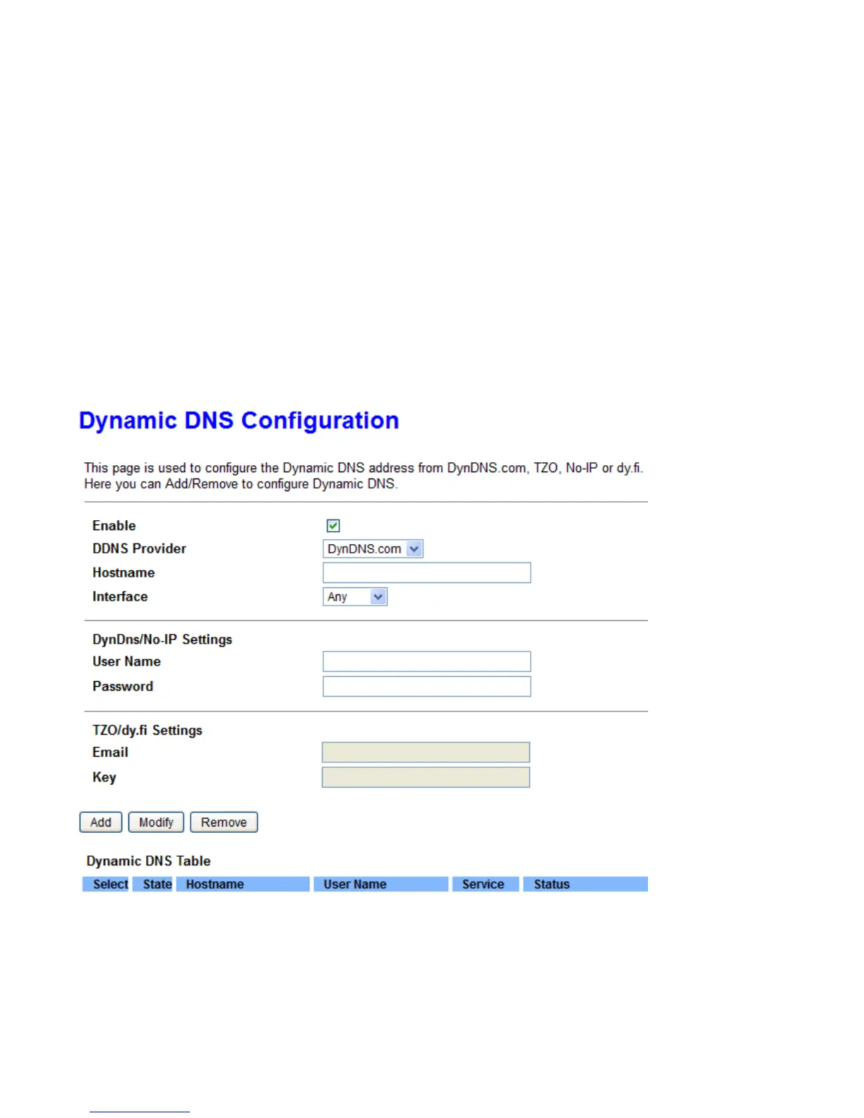 Enable: Select this check box to activate Dynamic DNS.