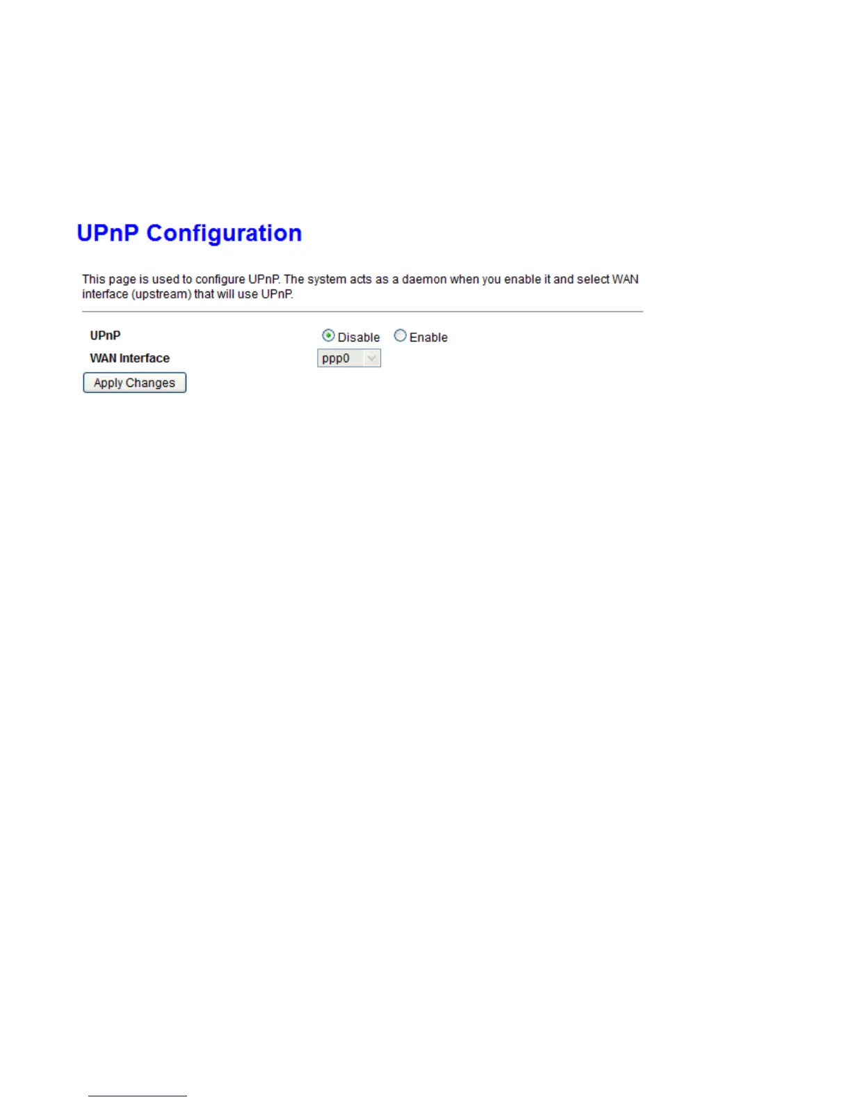 WAN Interface: The interface UPnp is applied to.