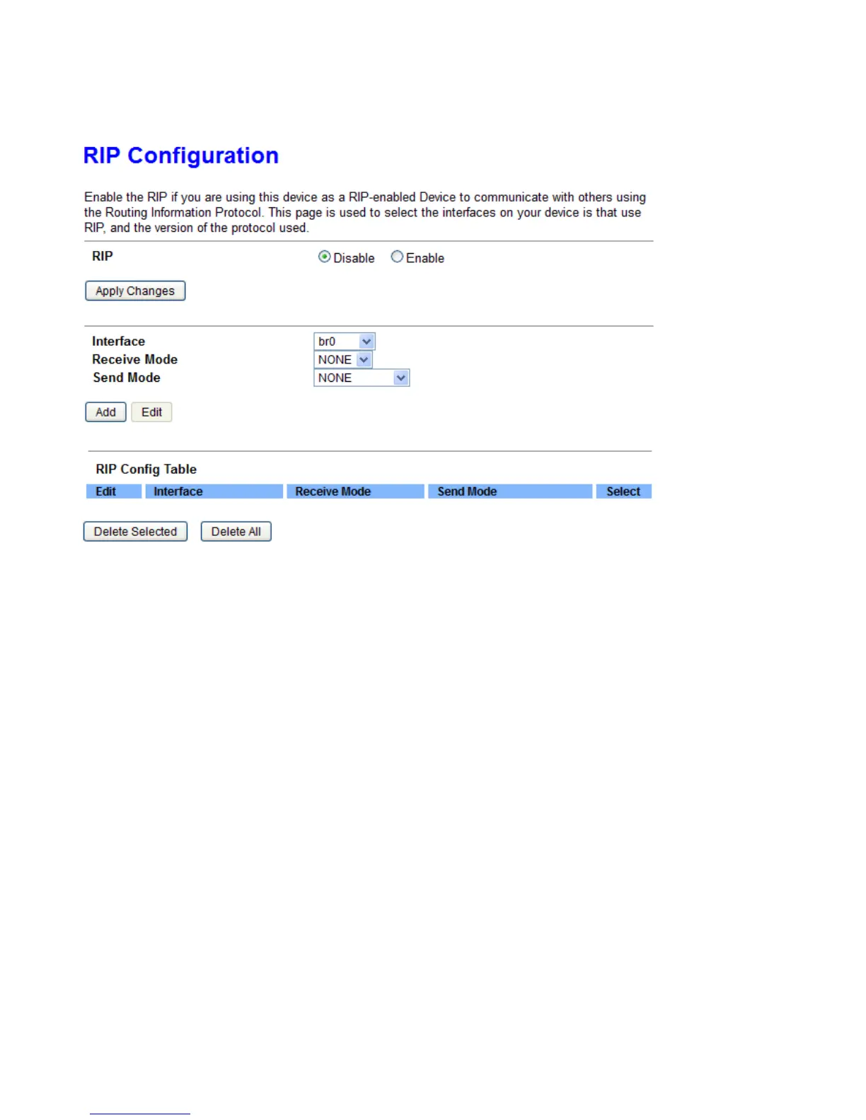 Add: Click it to add the RIP interface to the Rip Configuration List.