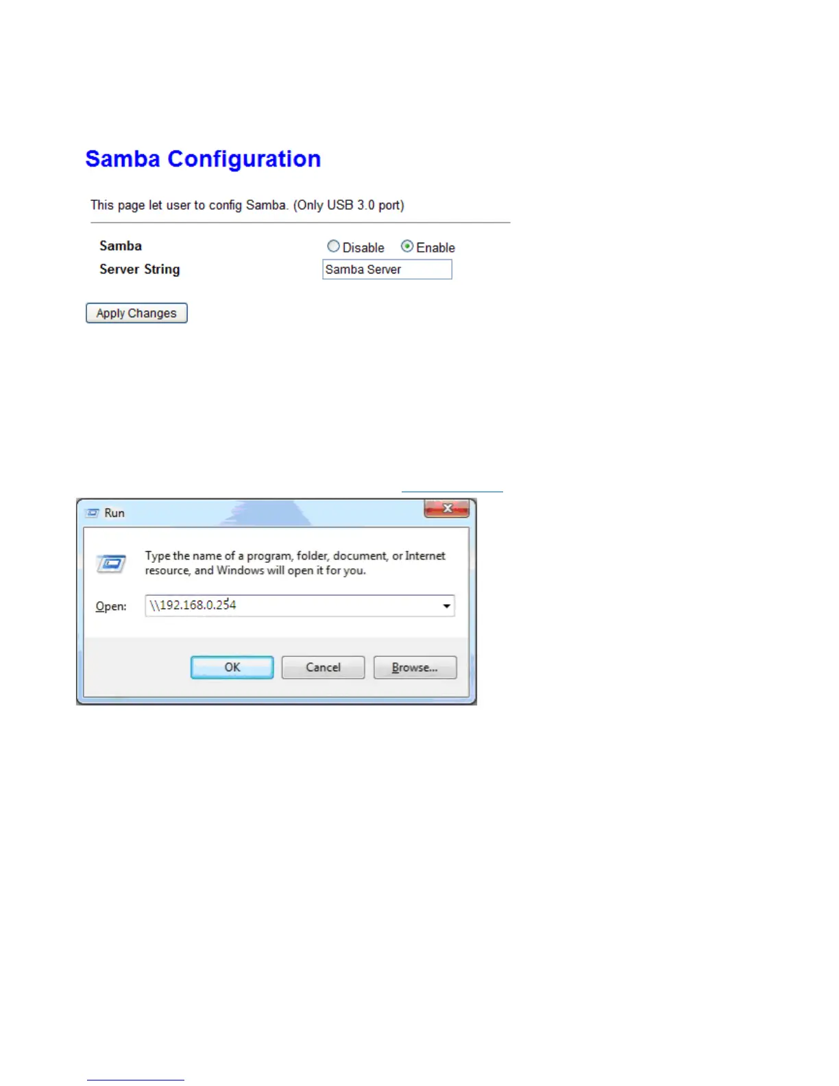 This page allows user to enable/disable the Samba server when USB storage is connected.