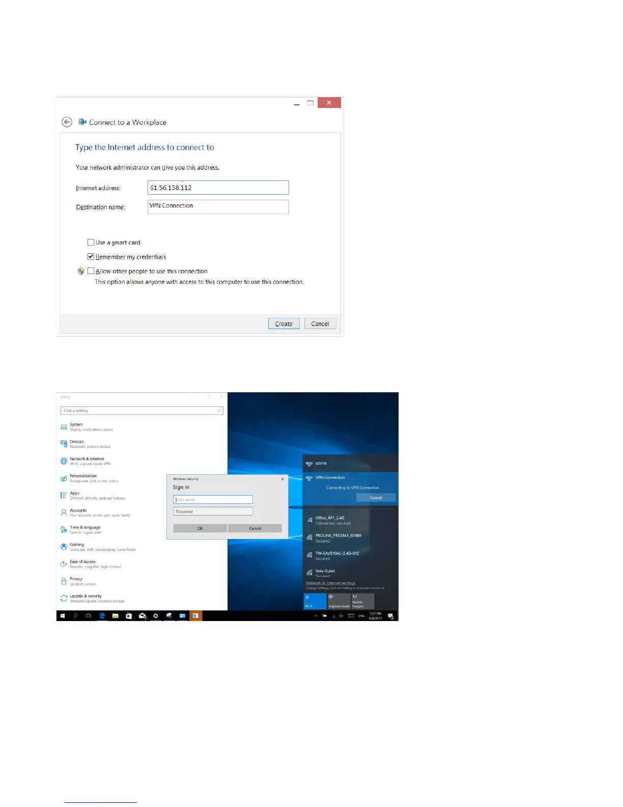 7. Enter the username and password that set on TW-EAV510 AC’s PPTP Server and click OK button to