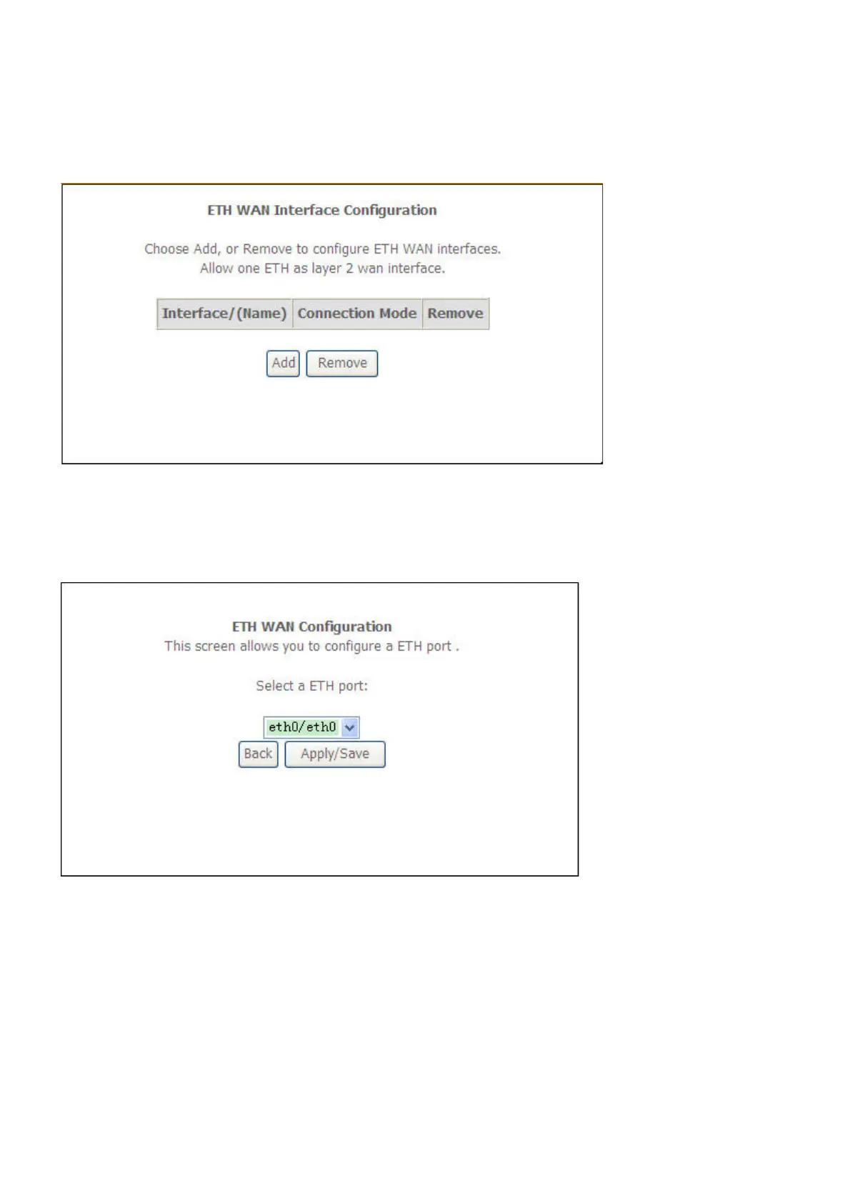 If you have selected to add or modify an ETH interface connection, the ETH WAN