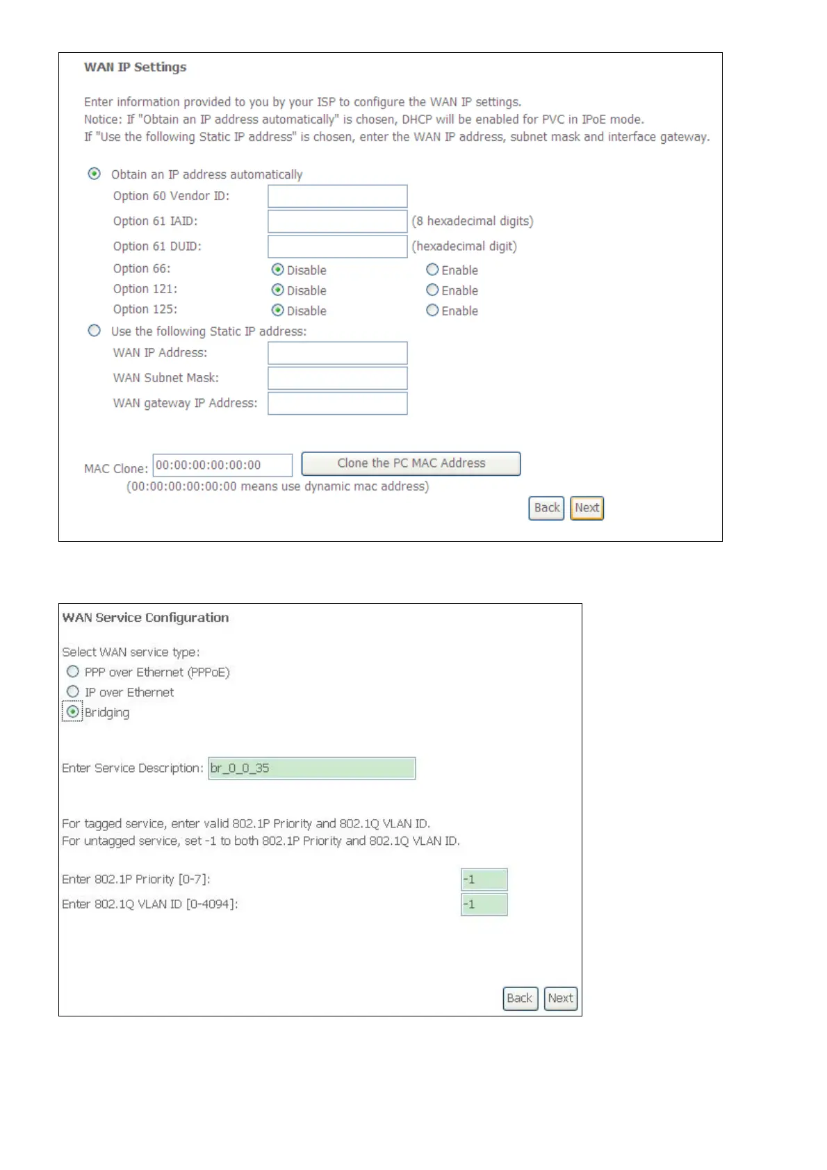 Click the Bridge radio button on this window. Click the Next button to continue.