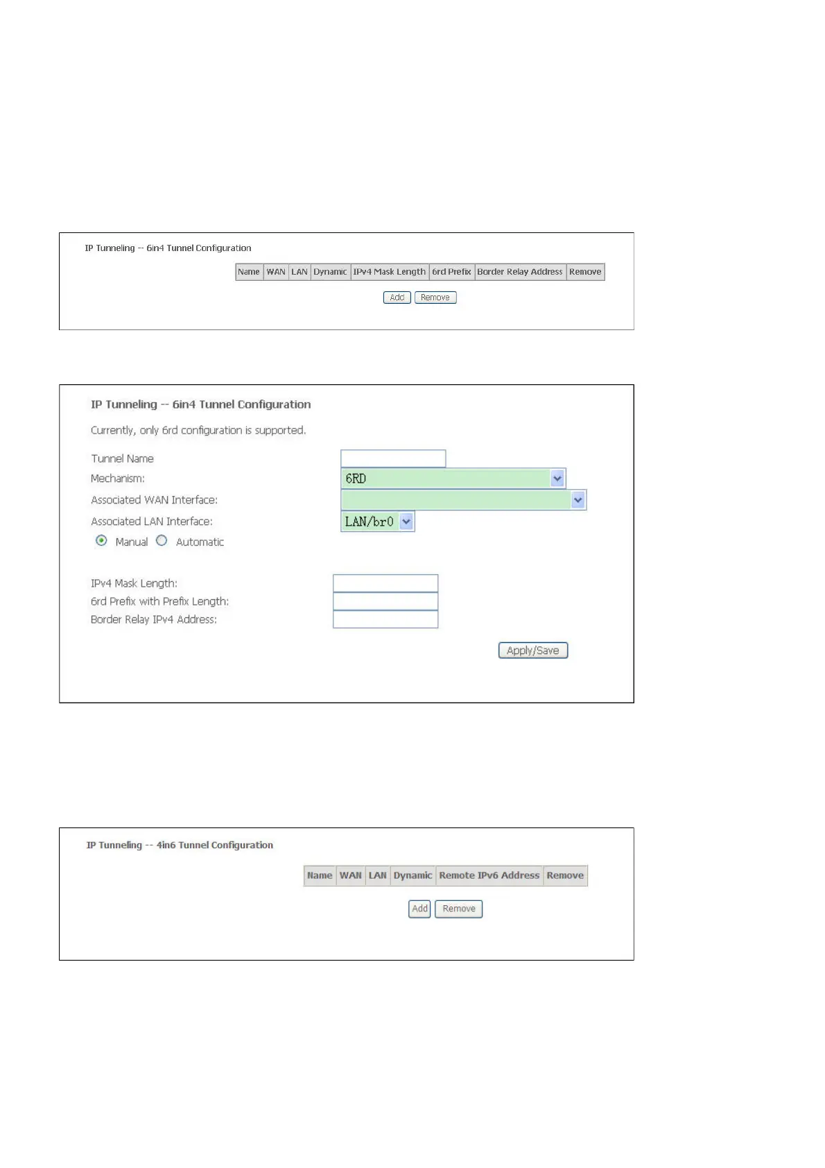 Select IPv4inIPv6 from the IP Tunnel submenu to open the IP Tunneling-4in6 Tunnel