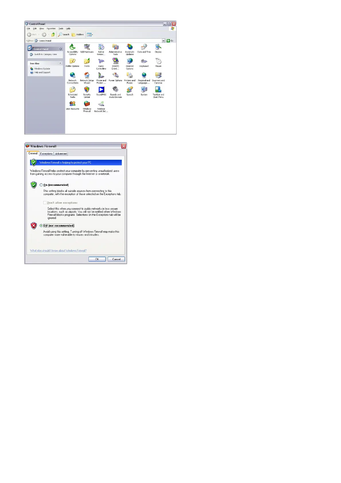 Note: There might be a potential security issue if you disable the setting of Firewall on your PC. Please
