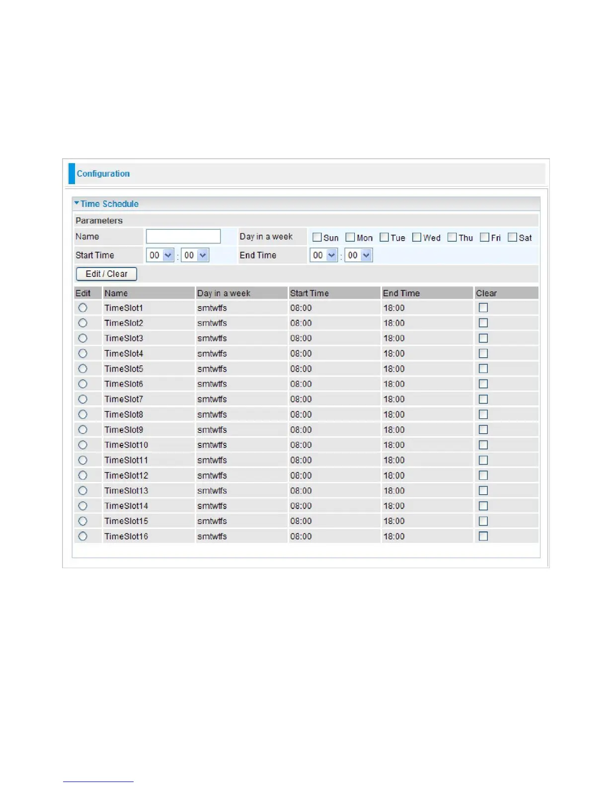 The Time Schedule supports up to 16 time slots which helps you to manage your Internet