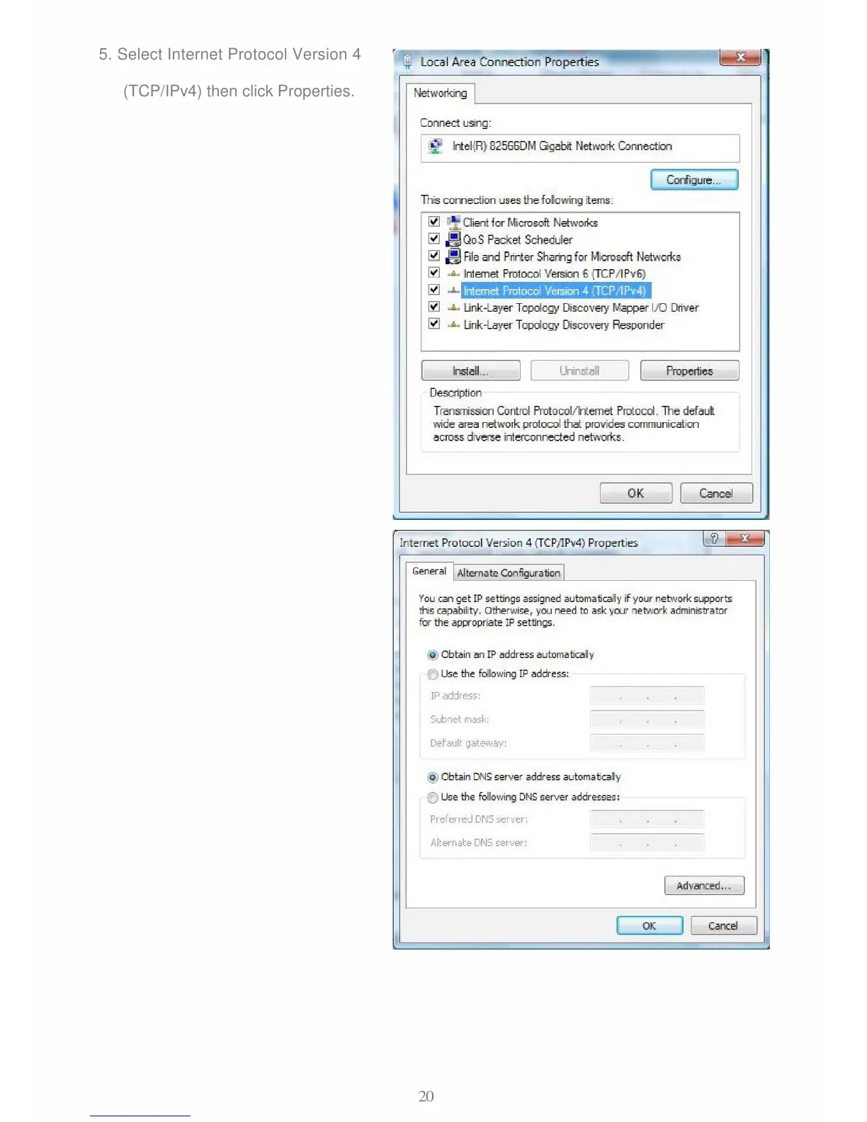 6. In the TCP/IPv4 properties window,