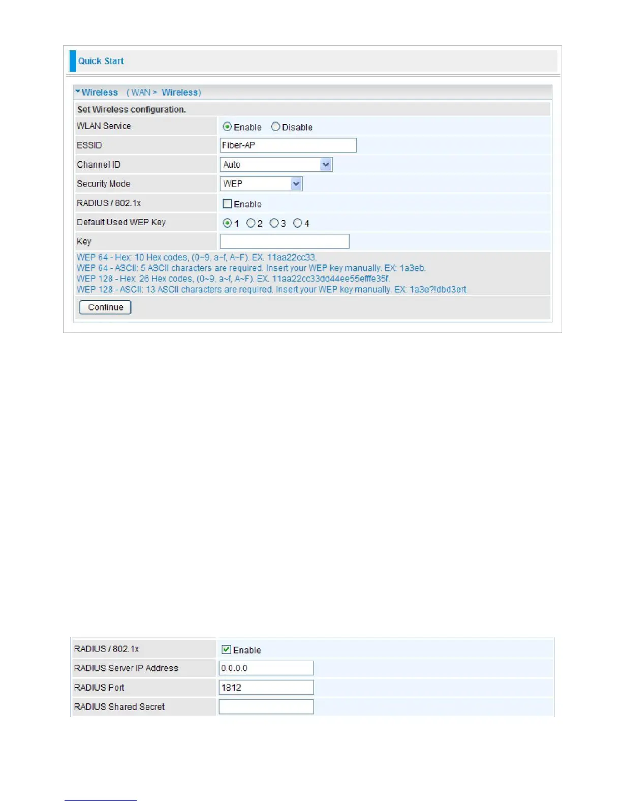 If you want to enable the RADIUS functionality, check Enable and then do the following settings as