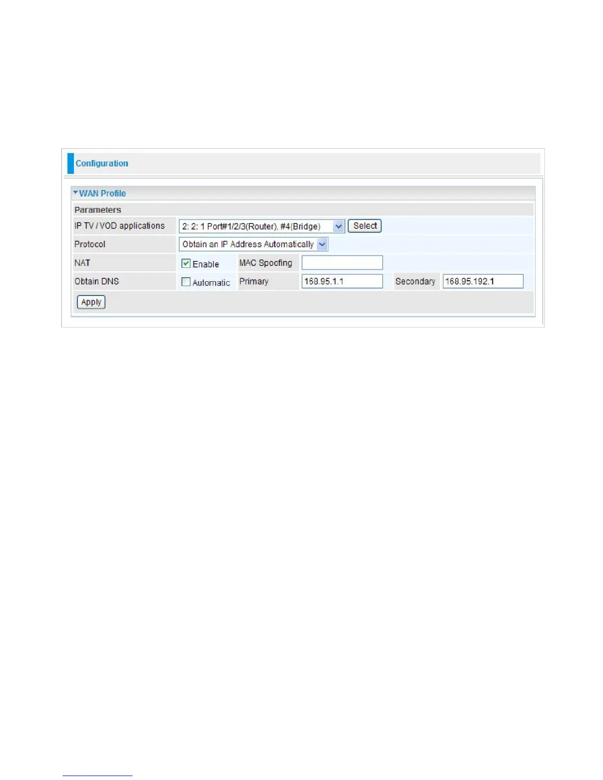 By configuring DHCP settings, the device is able to obtain IP settings automatically from the ISP.