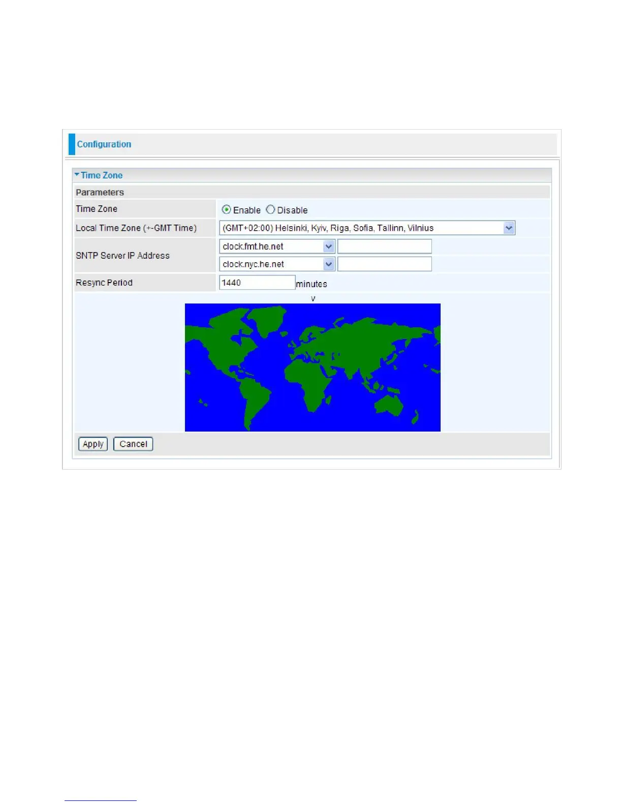 your local time zone from the drop down menu. To apply the selected local time zone, click Enable