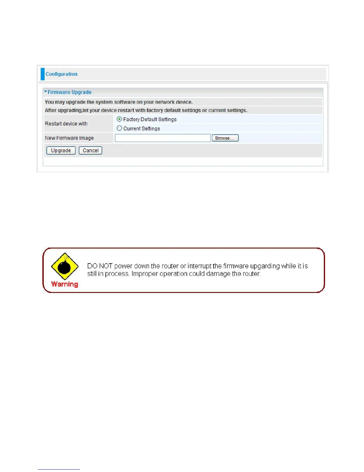 Click on Browse to select the new firmware image file you have downloaded to your PC. Once the